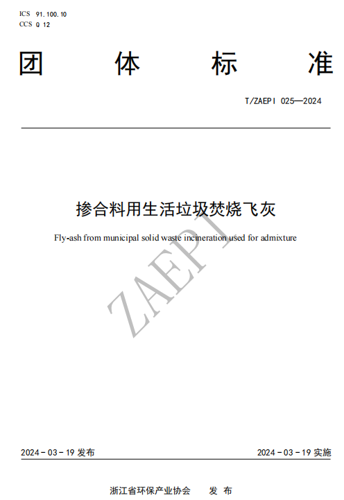 《摻合料用生活垃圾焚燒飛灰》標準號T/ZAEPI 025-2024,該標準由浙江京蘭環(huán)??萍加邢薰竞驼憬髮W主編,由浙江省環(huán)保產(chǎn)業(yè)協(xié)會于2024年3月19日批準發(fā)布,2024年3月19日起實施。文件規(guī)定了摻合料用生活垃圾焚燒飛灰的術(shù)語和定義、技術(shù)要求、試驗方法、檢驗規(guī)則、包裝、標志、運輸和貯存。文件適用于低溫熱分解及水洗解毒工藝處理后符合 HJ 1134規(guī)定的摻合料用生活垃圾焚燒飛灰,為后續(xù)飛灰處理產(chǎn)物的產(chǎn)品化進一步拓寬了應(yīng)用場景。