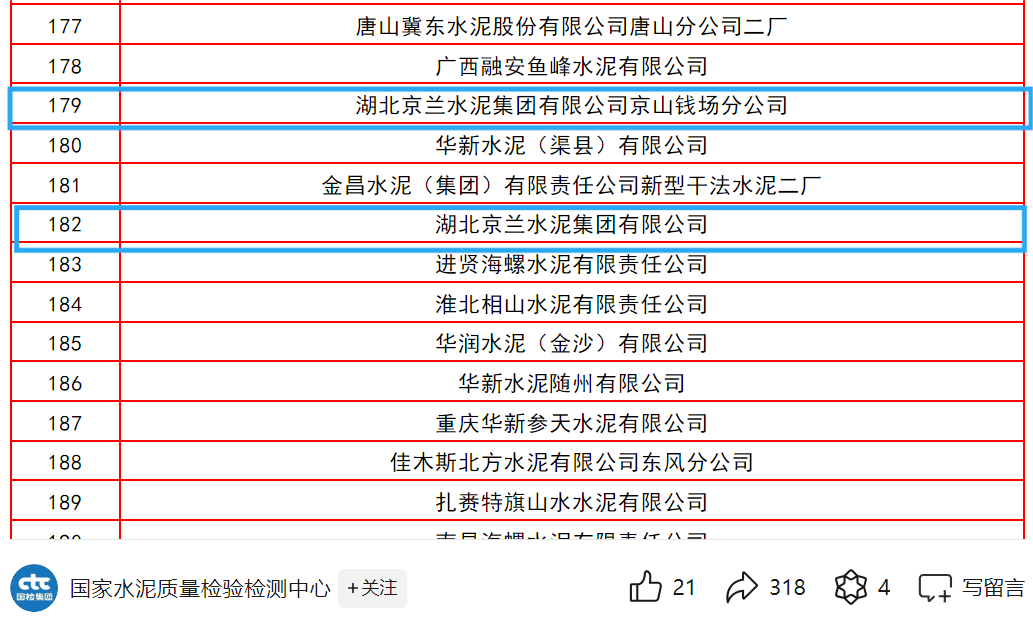 8月2日,備受矚目的“天寶華瑞杯”全國(guó)第十九次水泥化學(xué)分析大對(duì)比獲獎(jiǎng)名單正式揭曉,在這場(chǎng)全國(guó)性的水泥行業(yè)質(zhì)量競(jìng)技中,京蘭5家水泥公司均榮列榜單。