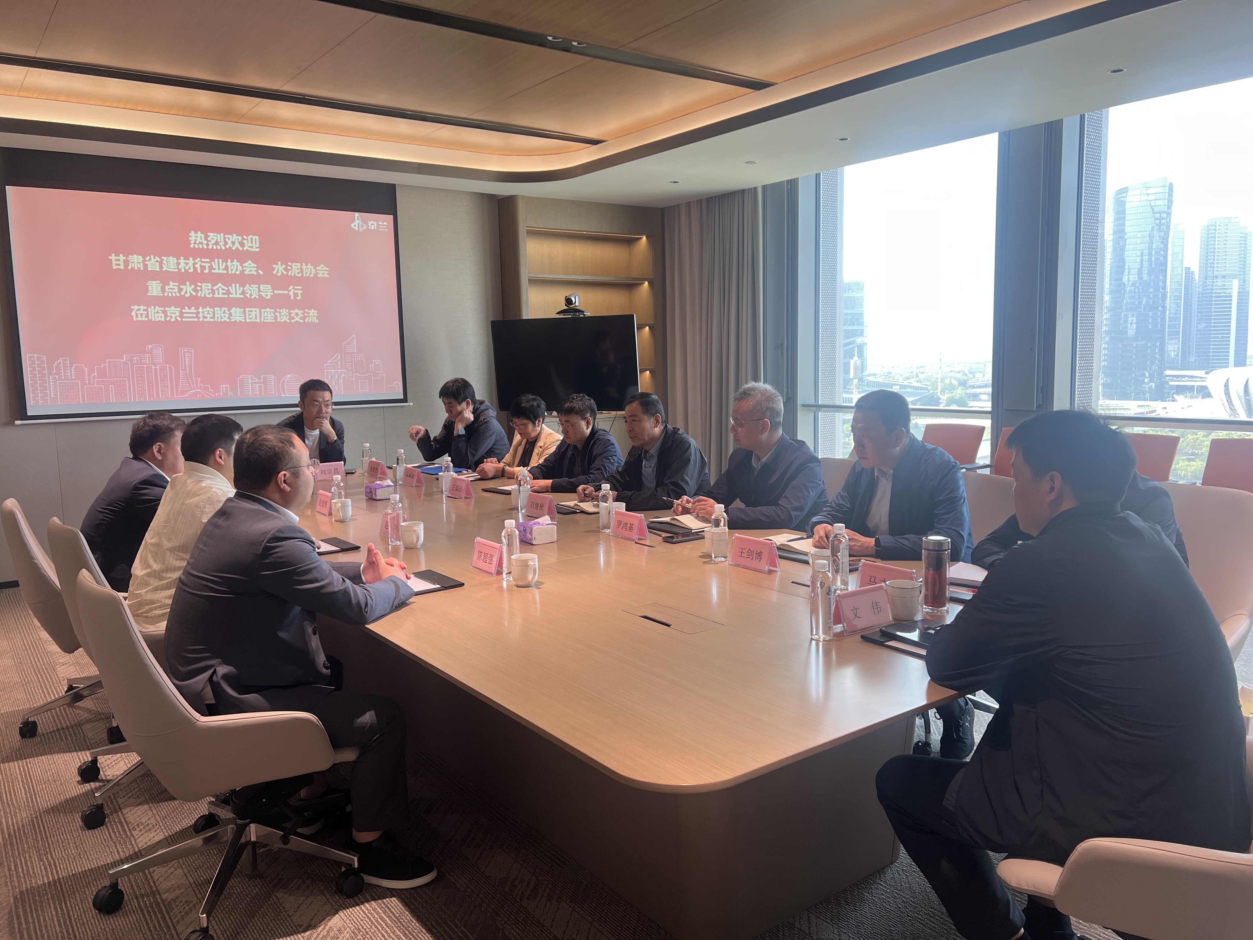 甘肅省建材行業(yè)協(xié)會副會長、甘肅祁連山水泥集團有限公司黨委書記、總裁羅鴻基,甘肅省建材行業(yè)協(xié)會、甘肅省水泥協(xié)會常務副會長兼秘書長王琰田,甘肅祁連山水泥集團有限公司黨委委員、副總裁王劍博,集團營銷中心總經理張守杰,甘肅省水泥協(xié)會執(zhí)行副會長、甘肅中材水泥有限責任公司總經理馬志鋒,甘肅省水泥協(xié)會執(zhí)行副會長、蘭州紅獅水泥有限公司總經理郭軼,甘肅省水泥協(xié)會副會長、臨夏海螺水泥有限責任公司總經理文偉,甘肅省水泥協(xié)會副會長、甘肅壽鹿山水泥有限責任公司總經理劉宗昌參加此次交流會議。京蘭集團董事長趙偉光、總經理趙志浩率管理團隊熱情接待,雙方就水泥行業(yè)生態(tài)建設、現代企業(yè)管理、技術創(chuàng)新、數字化轉型及綠色低碳發(fā)展等議題展開深入探討,并達成系列合作共識。